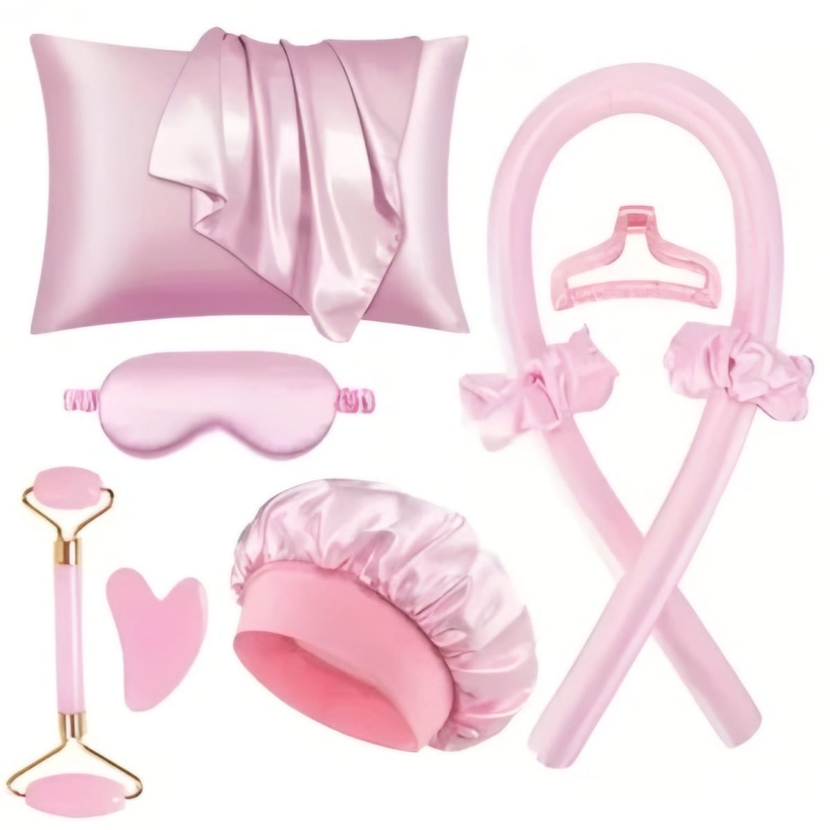 Offrez-vous une expérience complète de soins personnels avec cet ensemble de nuit de beauté en satin de 9 pièces.
